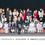 クリスマスコンサート 2011/12/24出張撮影kaba 本日は大阪市旭区へのピアノコンサートに出張撮影 今回が初めてのご依頼の教室です。 先生も若いけど、子供達がみんな小さい。 小さい子供たちの演奏は、ほんと微笑ましいです。 リトミックも頑張られていますね、1歳児から3歳までの お子様達が、お母さんと一緒に音楽に親しんで イイネです。